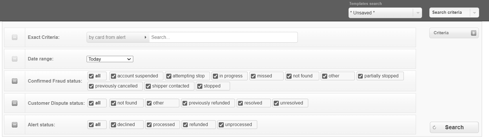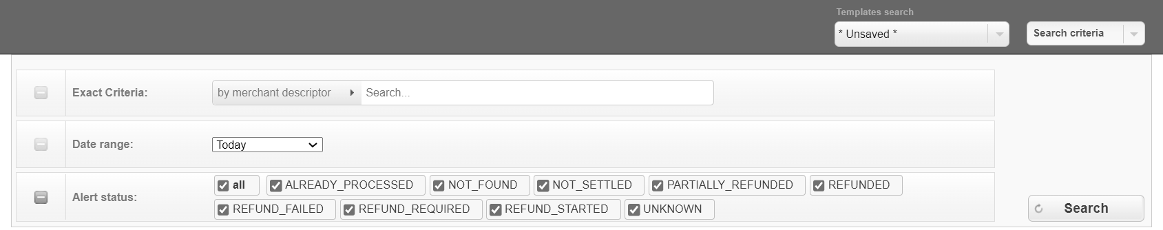 This section allows to see alerts from Ethoca which helps in preventing chargebacks: